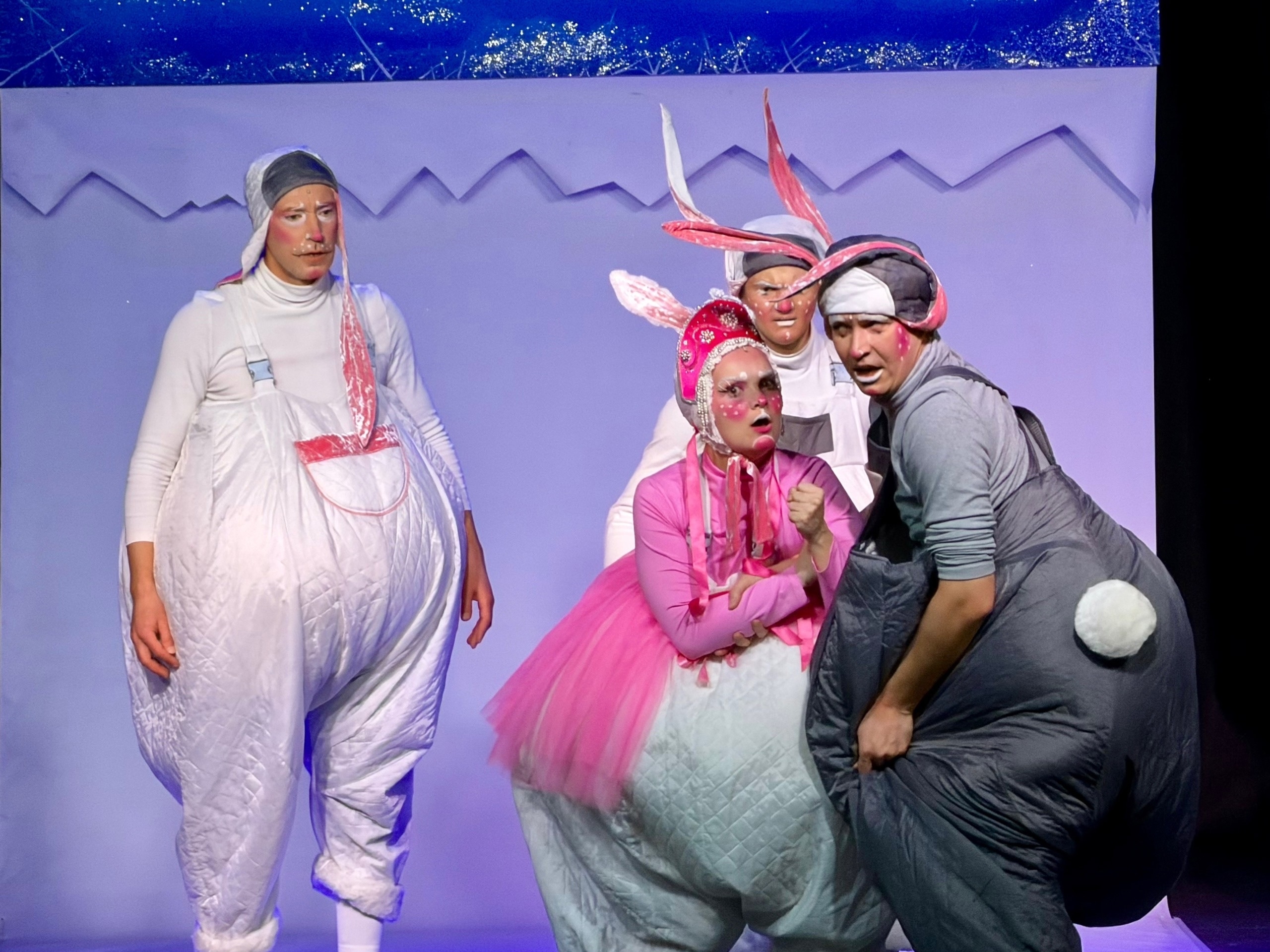 На сцене после интермедии-открытия, видеопоздравления от Губернатора Алексея Леонидовича Текслера, приветствия Заместителя Главы КГО по социальному развитию Алексея Анатольевича Ангеловского был представлен лёгкий, добрый и весёлый спектакль Челябинского театра драмы имени Наума Орлова "Как зайцы Новый год проспали".
